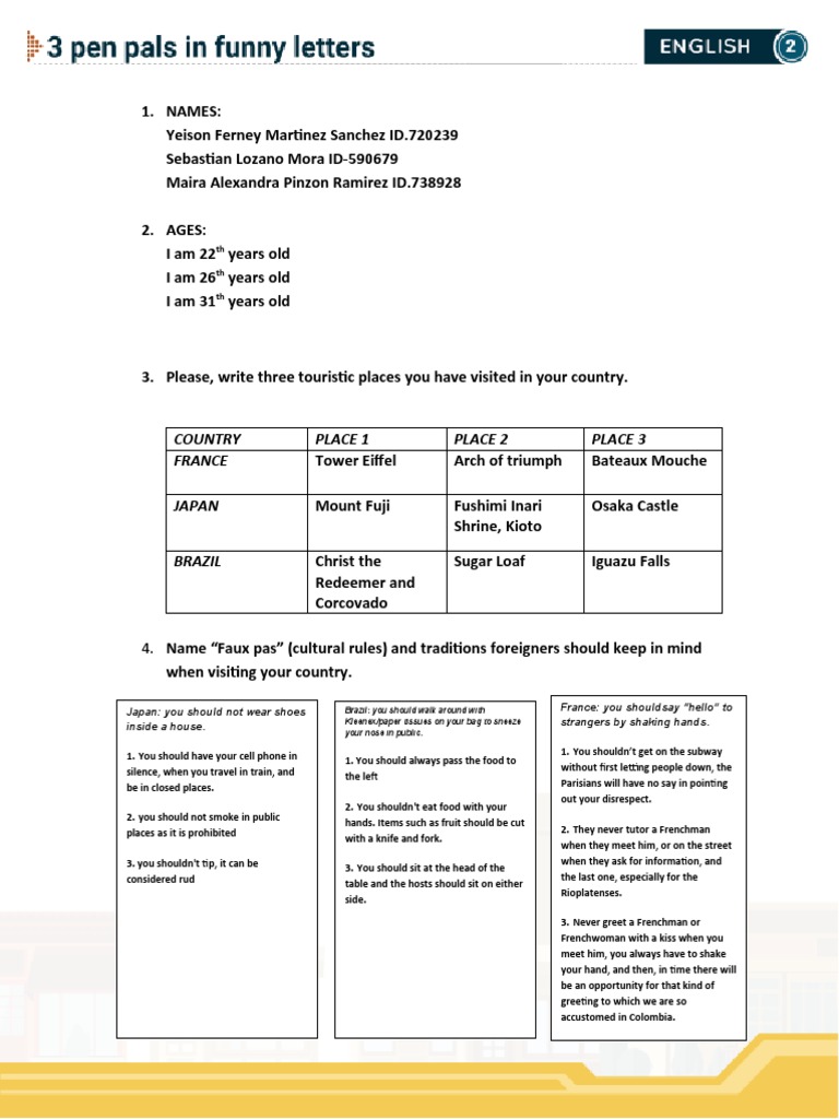 Japan: you should not wear shoes Brazil: you should walk around with France: you shouldsay “hello” to