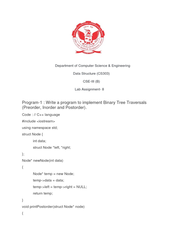 Program-1 : Write a program to implement Binary Tree Traversals