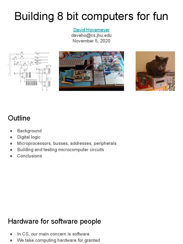 ● Serial communications (connect your PC or laptop to the 8 bit system)