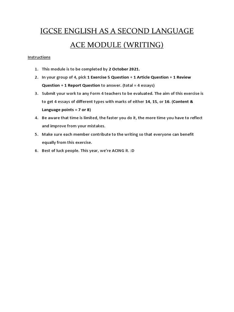 3. Submit your work to any Form 4 teachers to be evaluated. The aim of this exercise is