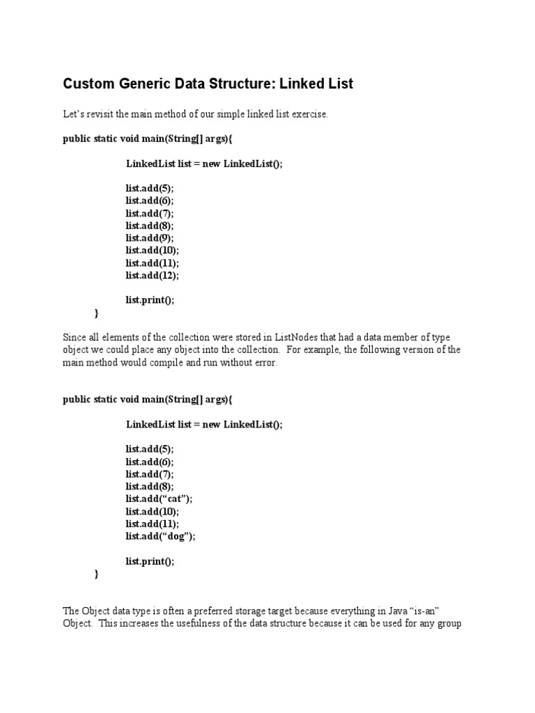 hold only Integers. The Linked List can still be used to hold any type, however we must specify