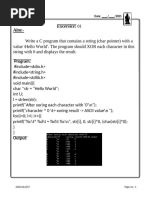 AIM: Write a C program that contains a string (char pointer) with a value \Hello World’.