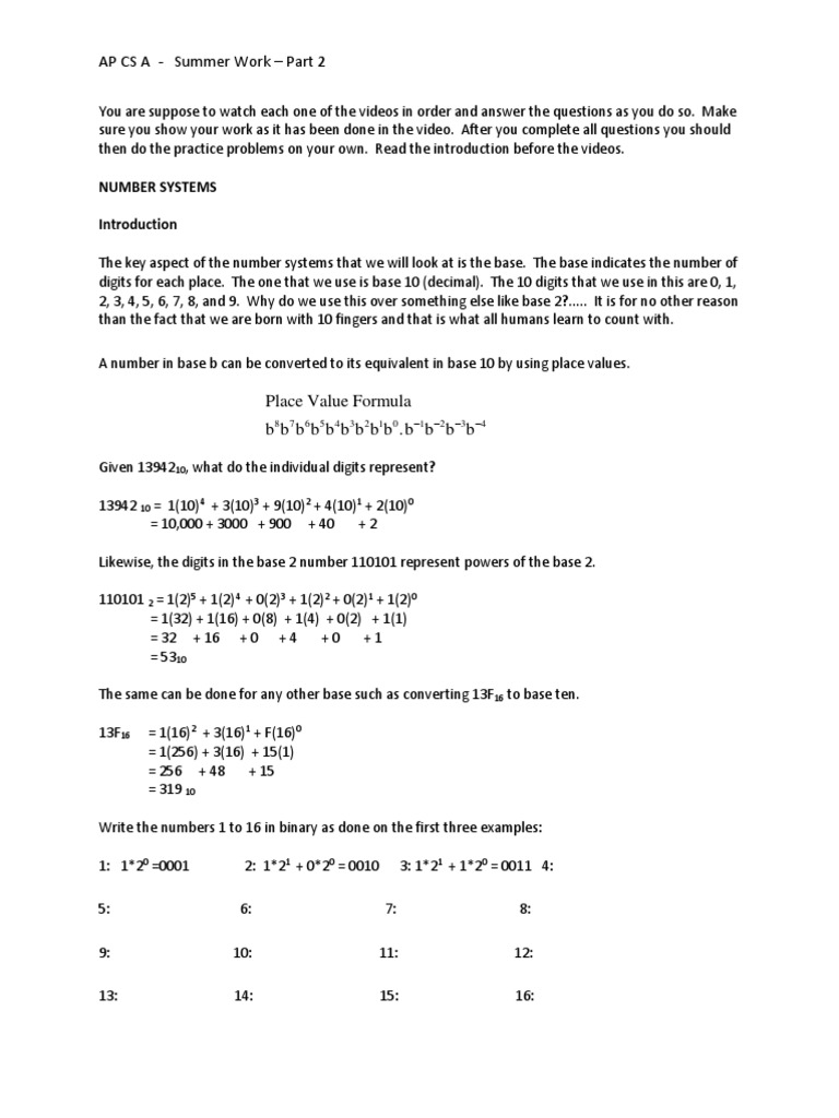 digits for each place. The one that we use is base 10 (decimal). The 10 digits that we use in this are 0, 1,