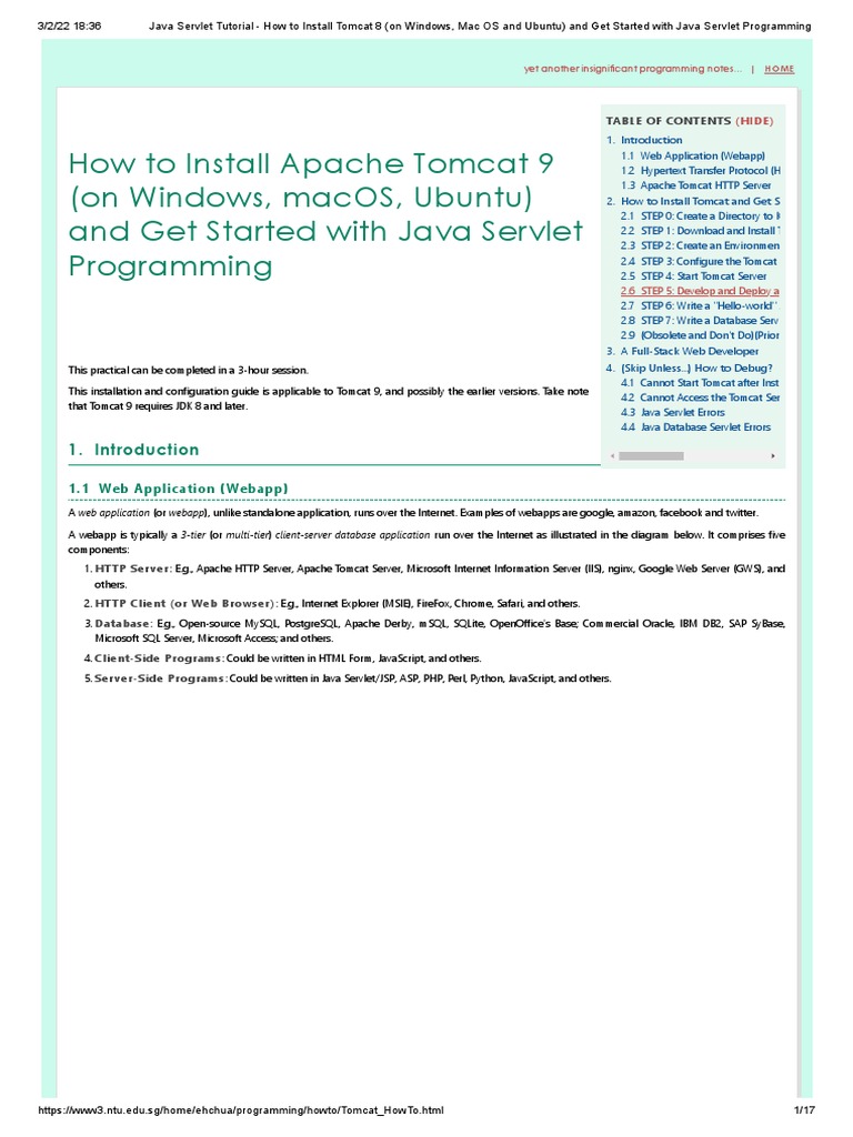3/2/22 18:36 Java Servlet Tutorial - How to Install Tomcat 8 (on Windows, Mac OS and Ubuntu) and Get Started with Java Servlet Programming
