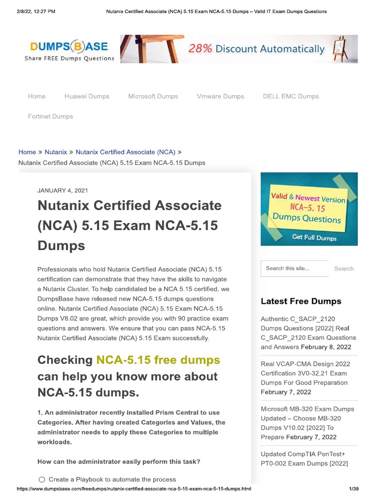 Iitps:siwwn.dumpsbase.comfreedumpsinutanix-certiied-associate-nca-5-15-exam-nca-5-15-dumps html 38139218/22, 12:27 PM "Nutanix Ceriiog Associate (NCA) 5.15 Exam NOA-S.15 Dumps ~ Vali IT Exam Dumps Questions