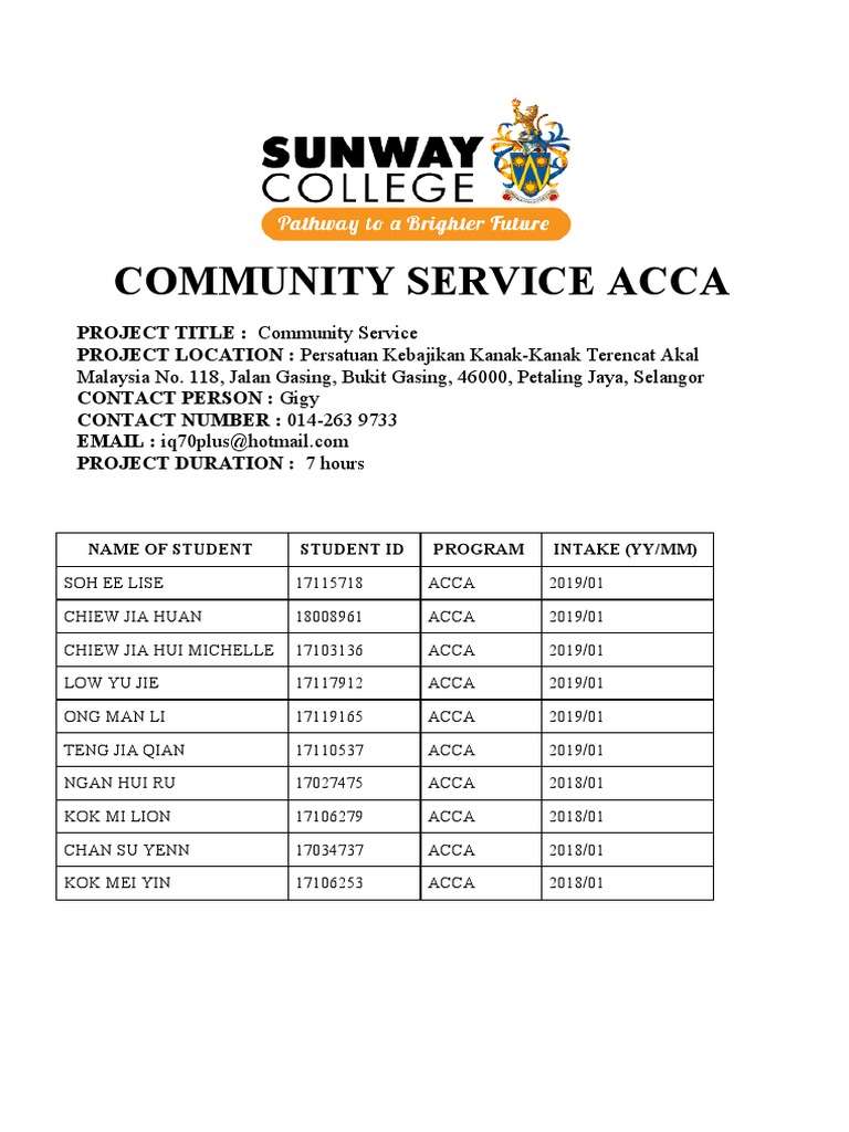 PROJECT LOCATION : Persatuan Kebajikan Kanak-Kanak Terencat Akal