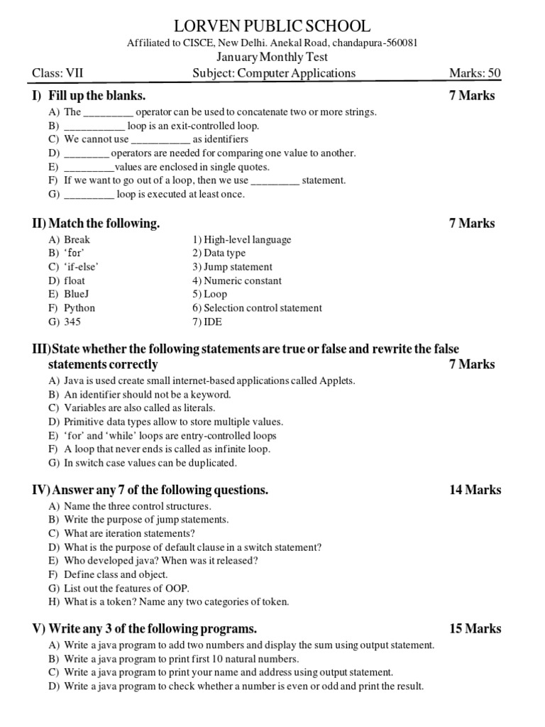 Affiliated to CISCE, New Delhi. Anekal Road, chandapura-560081