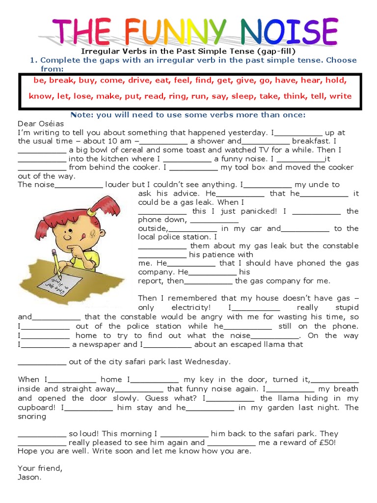 1. Complete the gaps with an irregular verb in the past simple tense. Choose