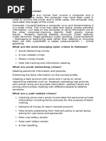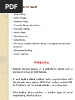 Web jacking, Online Frauds, Software Piracy, Computer Network Intrusions, Password Sniffing, Identity