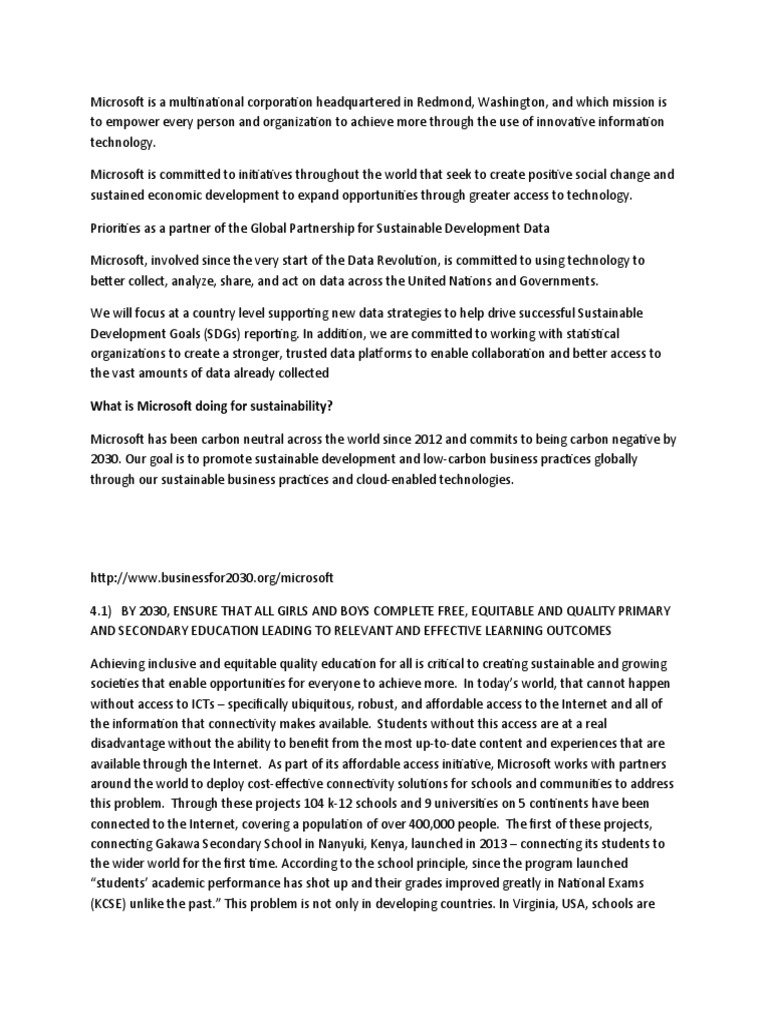 development of Microsoft, the corporation has resulted to keenly focusing on sustainable development