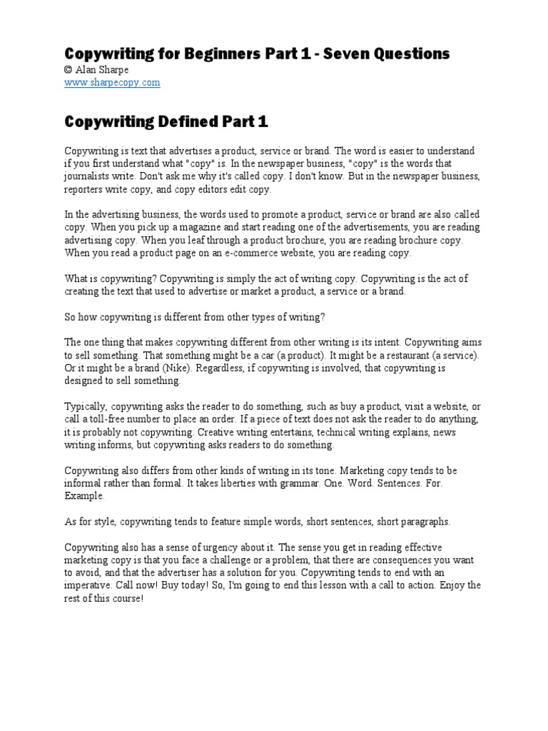 Typically, copywriting asks the reader to do something, such as buy a product, visit a website, or
