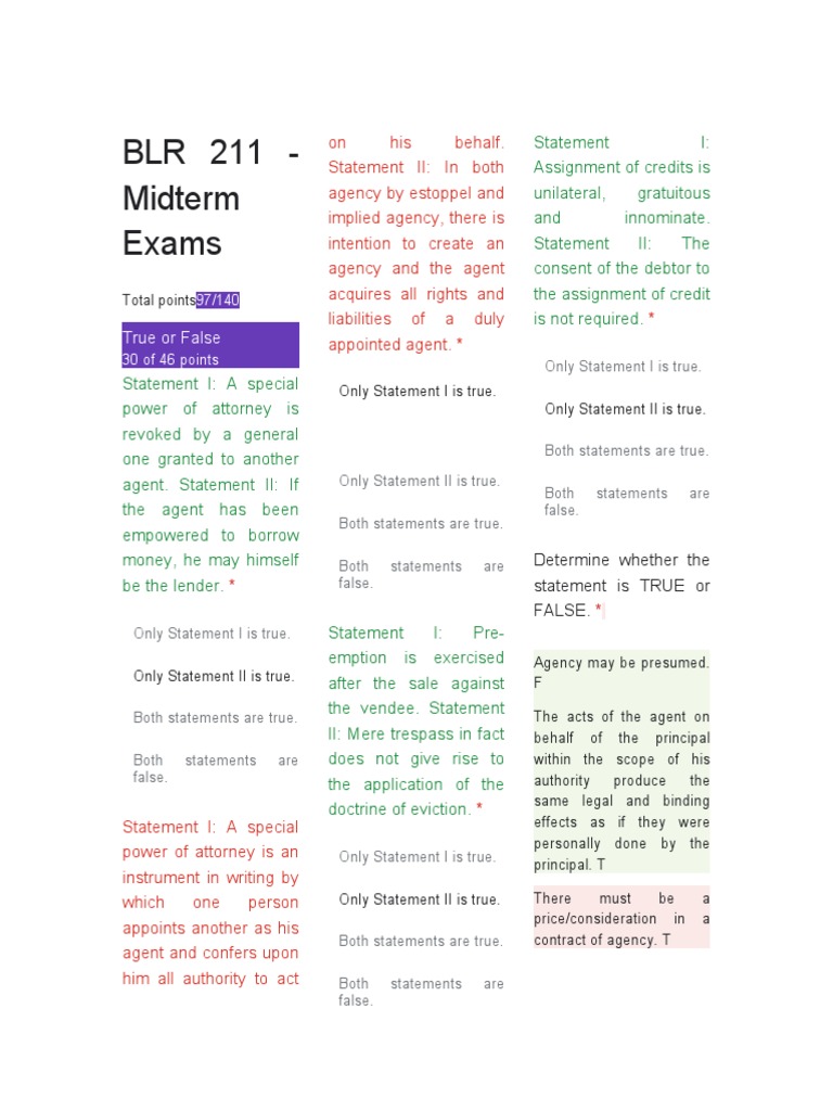 power of attorney is an Only Statement I is true.