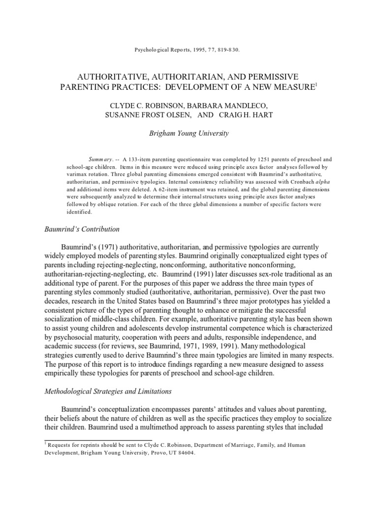 academic success (for reviews, see Baumrind, 1971, 1989, 1991). Many methodological