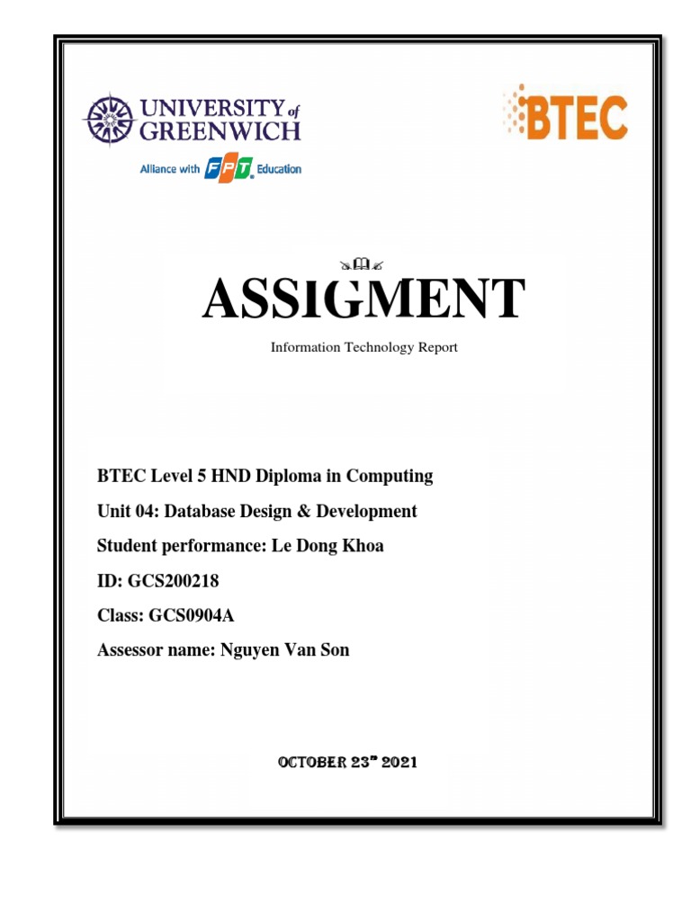 Anon., 2021. Power Point Slides DATA BASE DESIGN. HCM, Greenwich University VietNam.