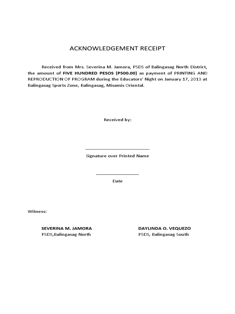 ACKNOWLEDGEMENT RECEIPT