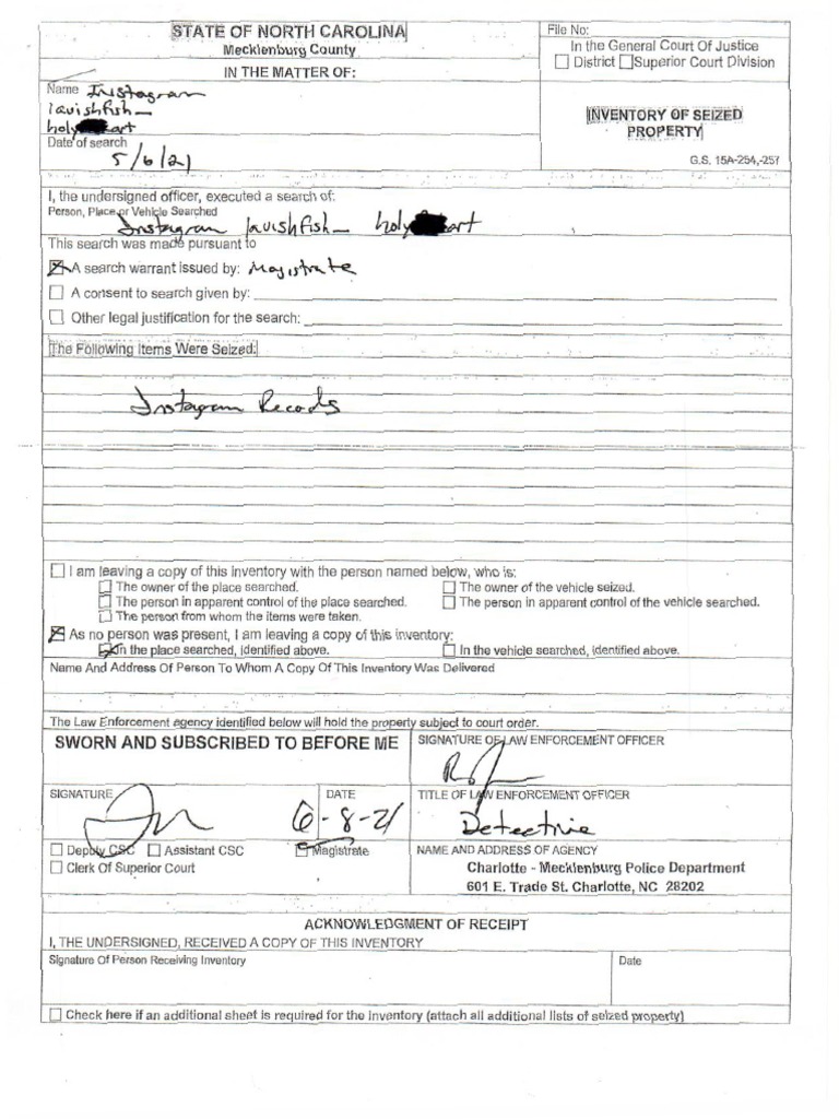 fttps://www.instagram.com/lavishfis! To any officer with authority and jurisdiction to conduct the search authorized by this Search