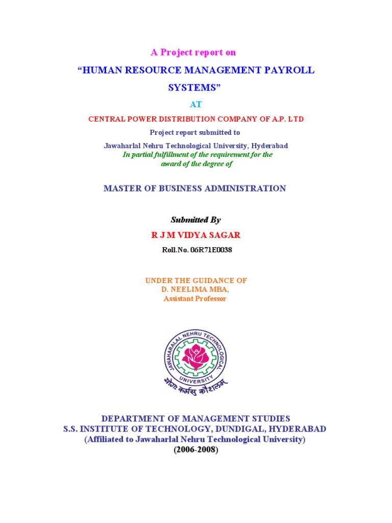 Project Manager, Hyderabad for allowing, supervising and guiding me to
