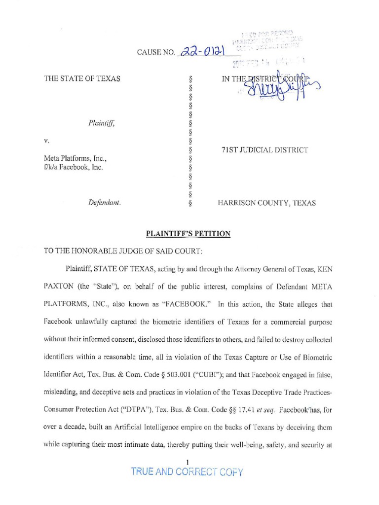‘The scope of Facebook’s misconduct is staggering. Facebook repeatedly captured Texans