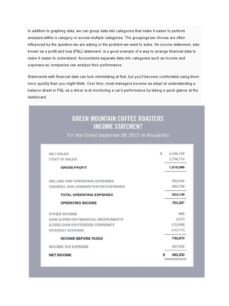 known as a profit and loss (P&L) statement, is a good example of a way to arrange financial data to
