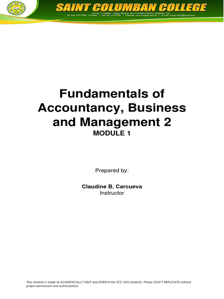 Course Title: Fundamentals of Accountancy, Business and Management