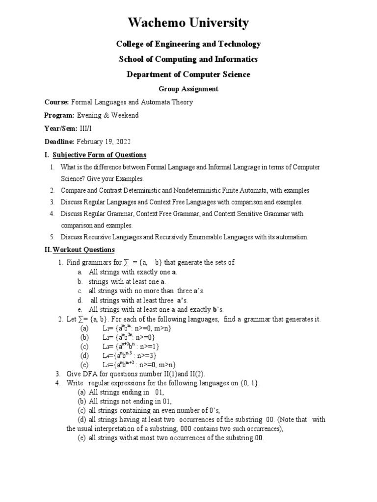 1. Find grammars for ∑ = {a, b} that generate the sets of