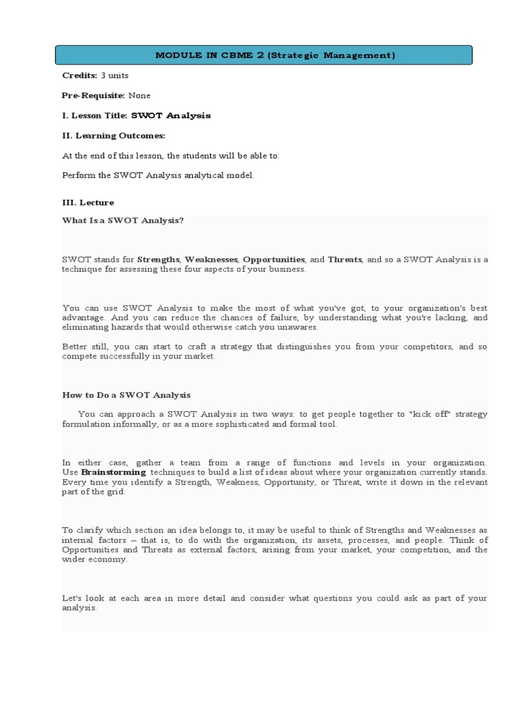 Flores, A. (2020). Module in CBME 2 (Strategic Management). Dalubhasaan ng Lungsod ng San