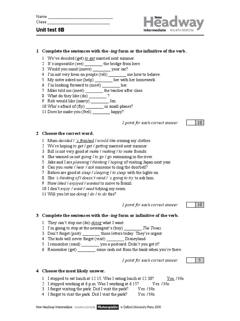 1 Complete the sentences with the -ing form or the infinitive of the verb.