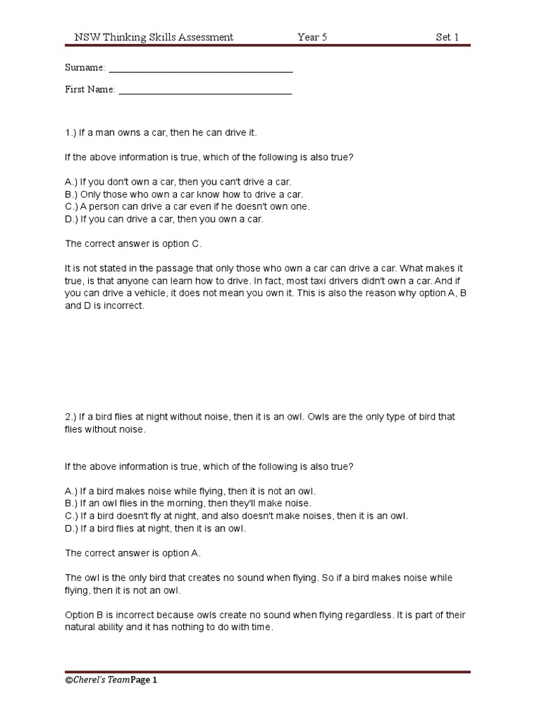 NSW Thinking Skills Assessment Year 5 Set 1