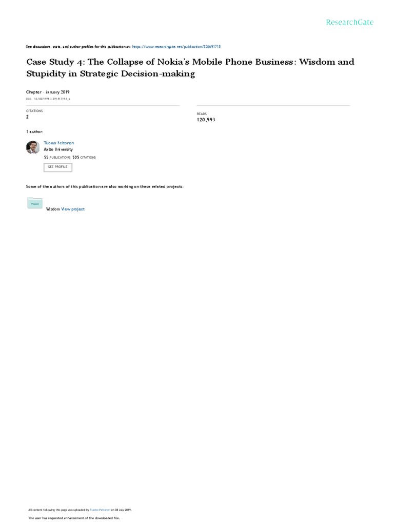 Case Study 4: The Collapse of Nokia’s Mobile Phone Business: Wisdom and