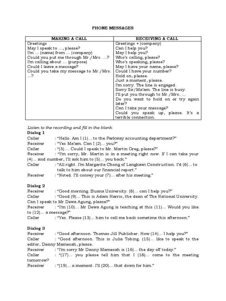 (4)... and number, I’ll ask him to (5)... you back.”