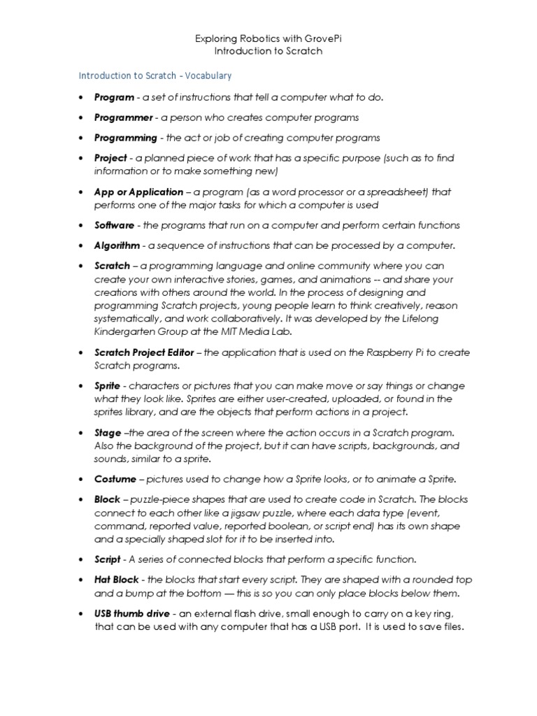 Introduction to Scratch - Vocabulary