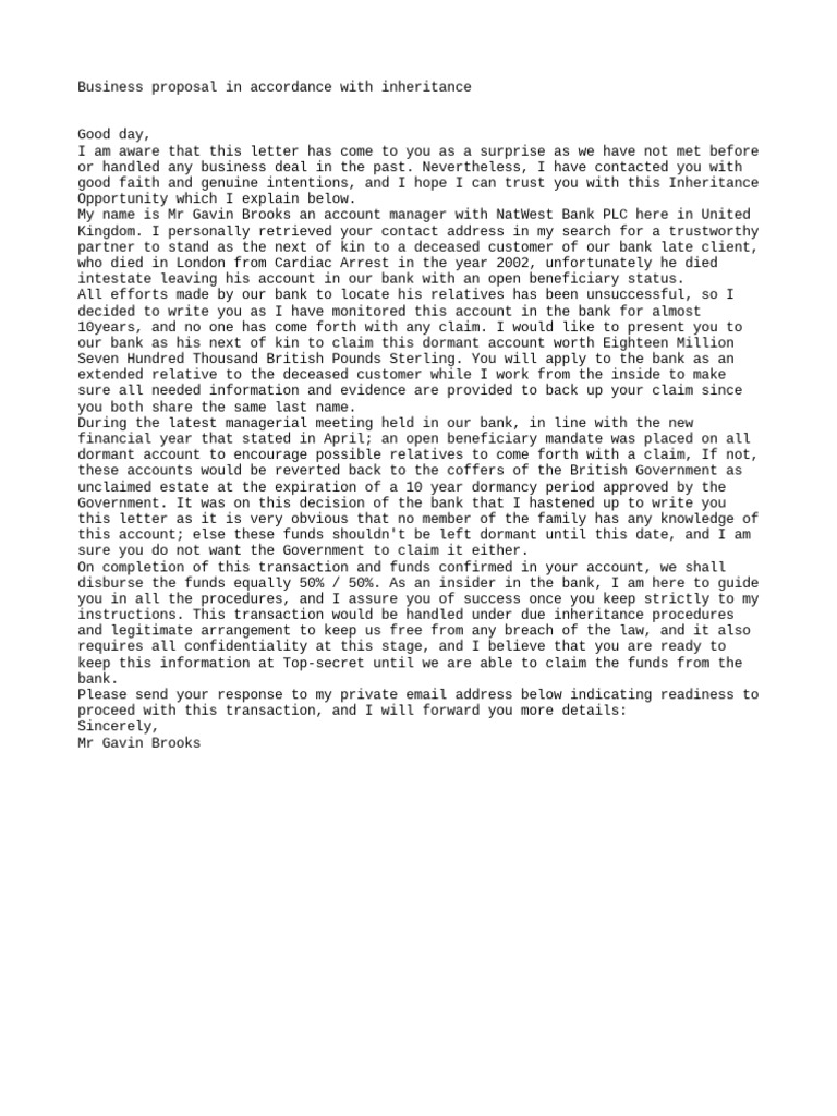 Business proposal in accordance with inheritance