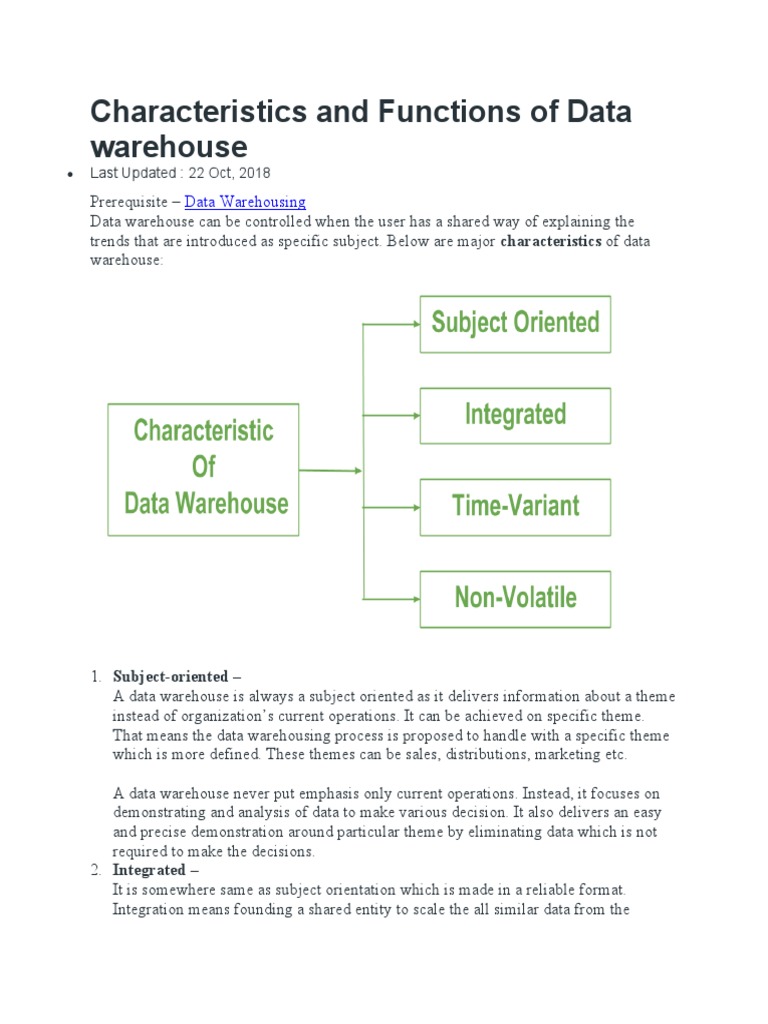 To begin with, data warehouse is an archive of historical corporate data stored together for analyzing
