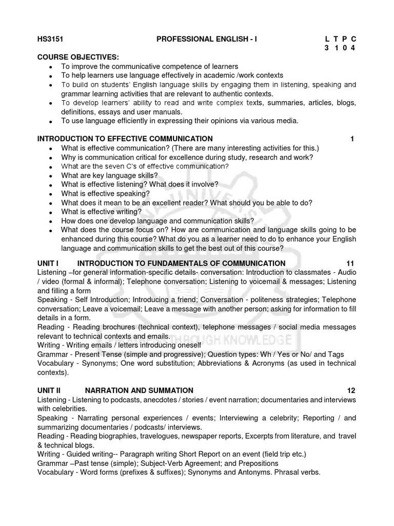 HS3151 PROFESSIONAL ENGLISH - I L T P C
