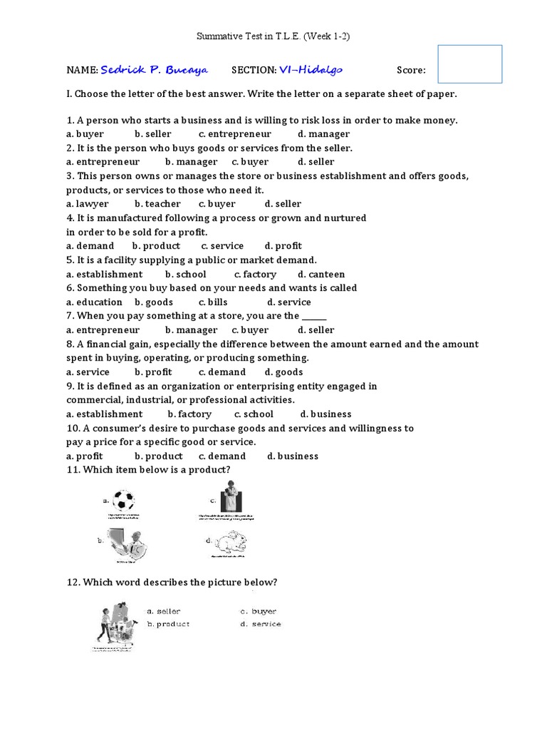 I. Choose the letter of the best answer. Write the letter on a separate sheet of paper.