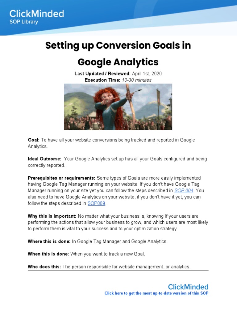 This SOP covers 2 methods of setting up your Goals: using Google Tag Manager, and