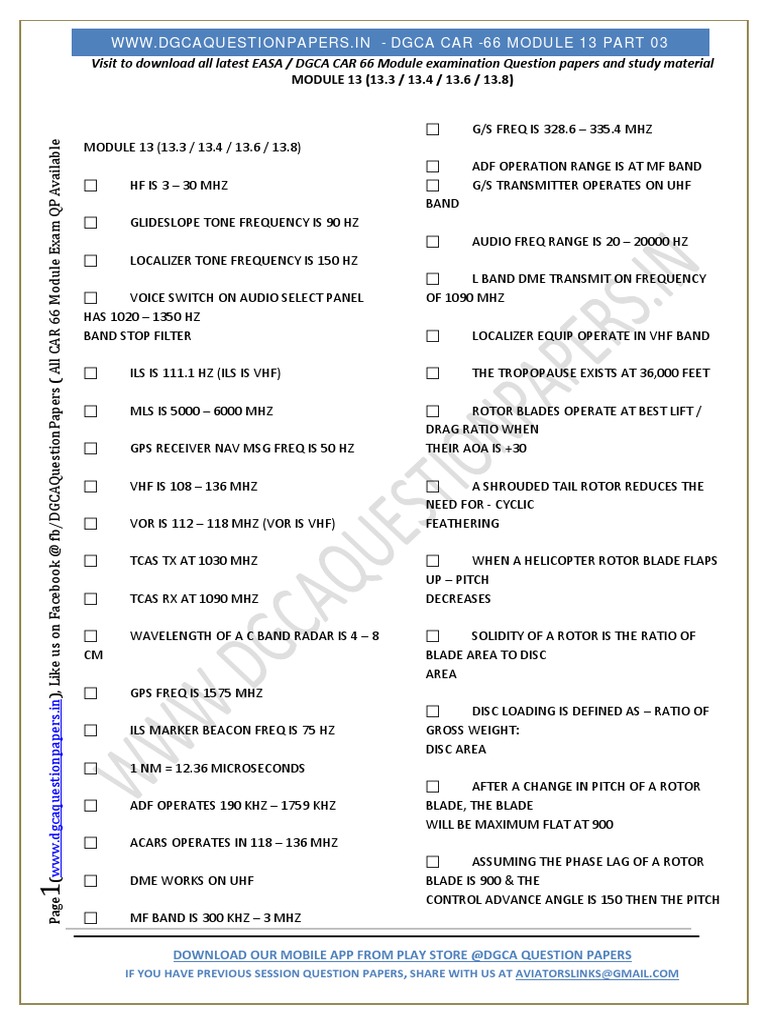 Visit to download all latest EASA / DGCA CAR 66 Module examination Question papers and study material