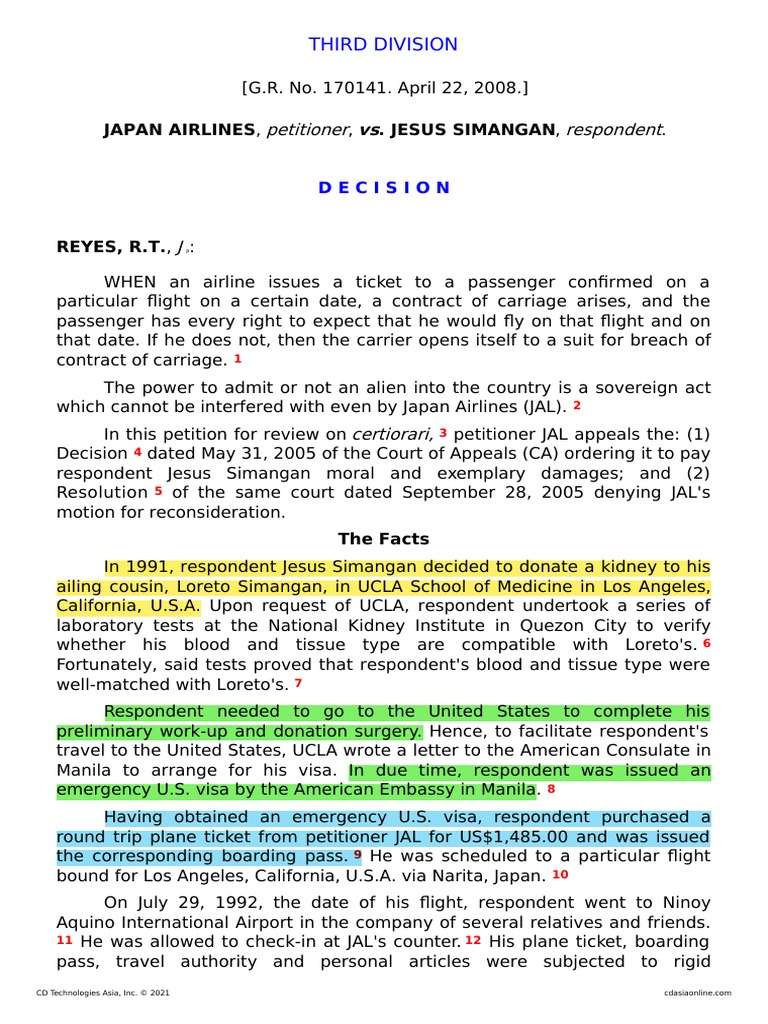 JAPAN AIRLINES, petitioner, vs. JESUS SIMANGAN, respondent.