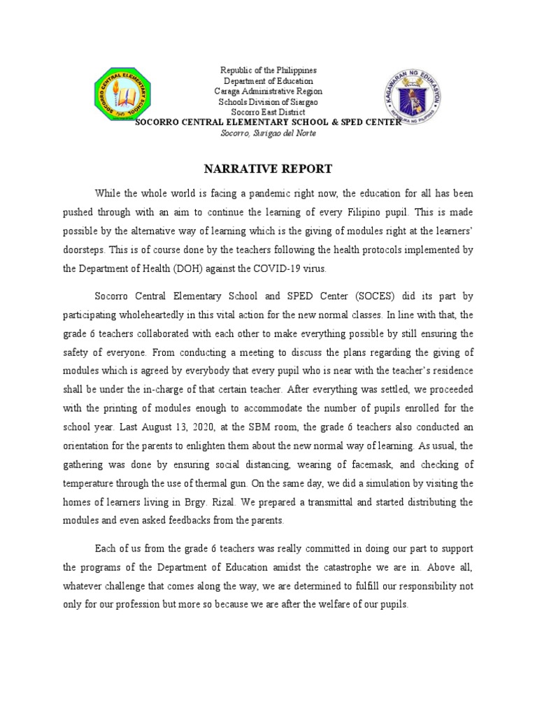 and resourceful to make the materials enough for 144 grade 6 Socorronhon learners.
