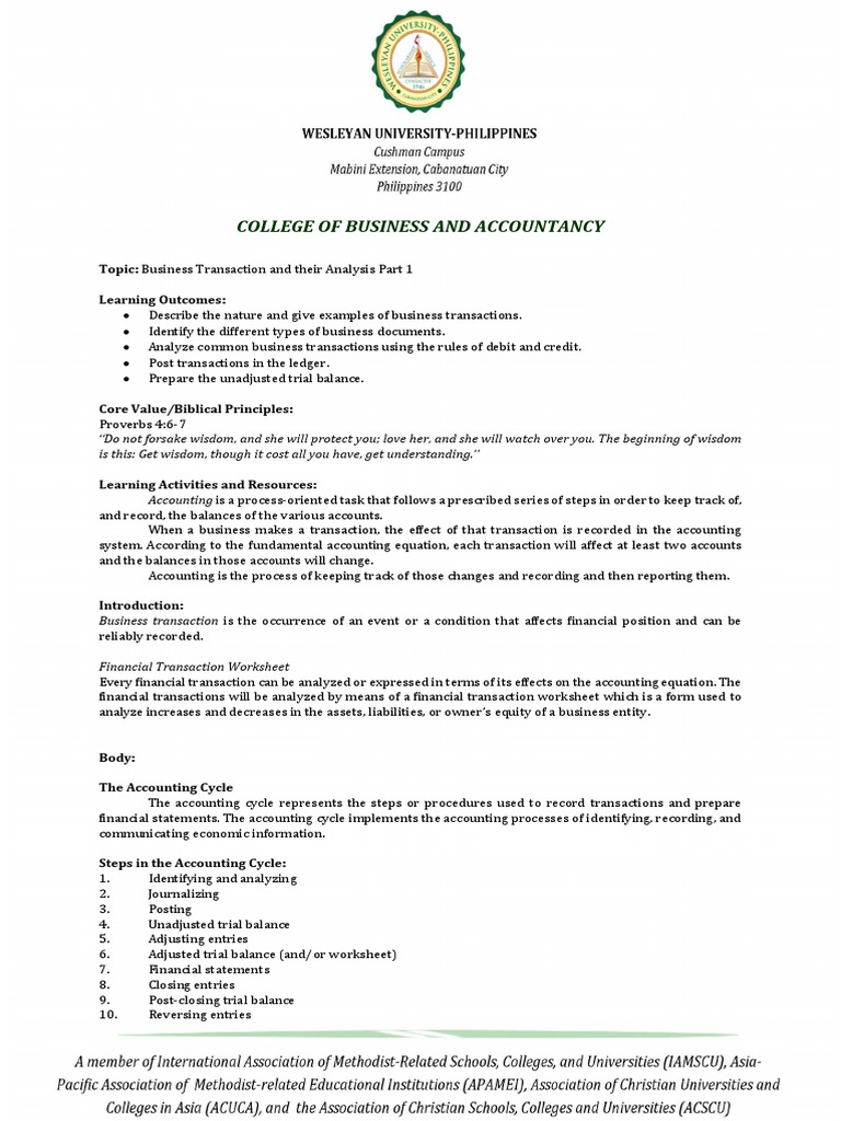 financial transactions will be analyzed by means of a financial transaction worksheet which is a form used to