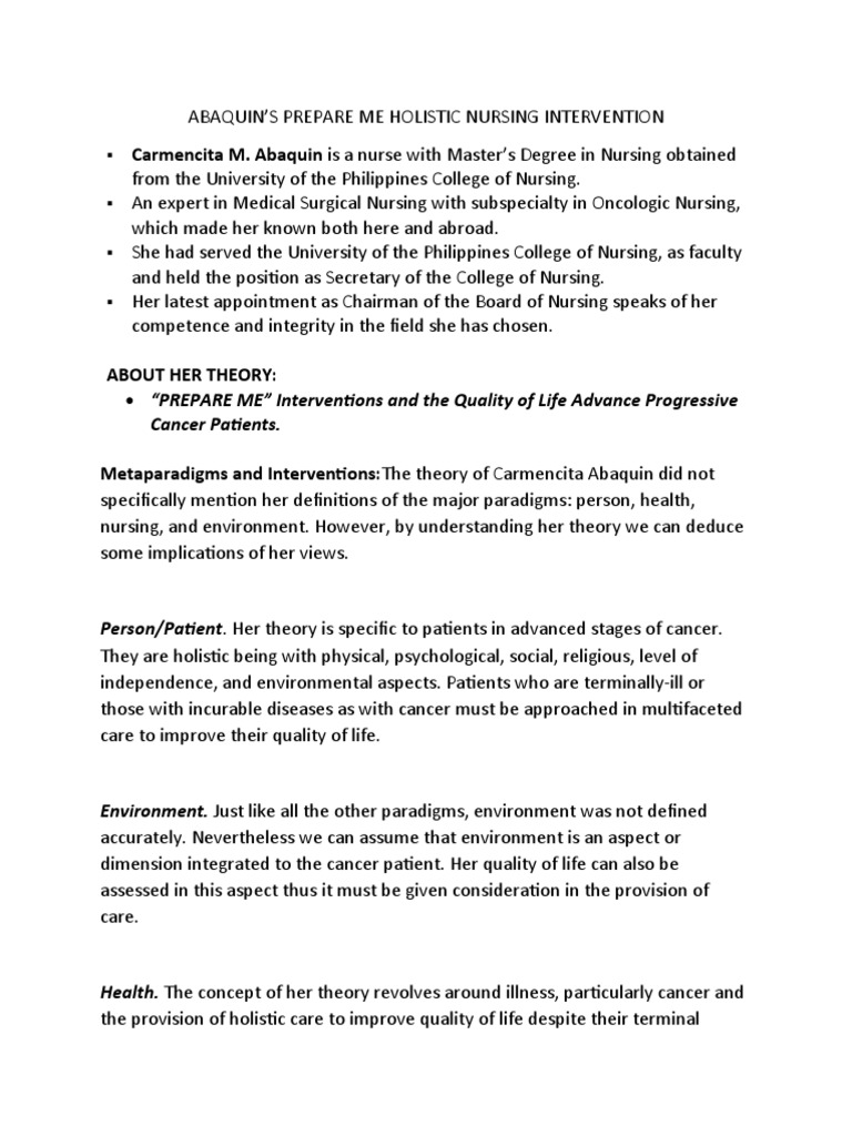 ABAQUIN’S PREPARE ME HOLISTIC NURSING INTERVENTION