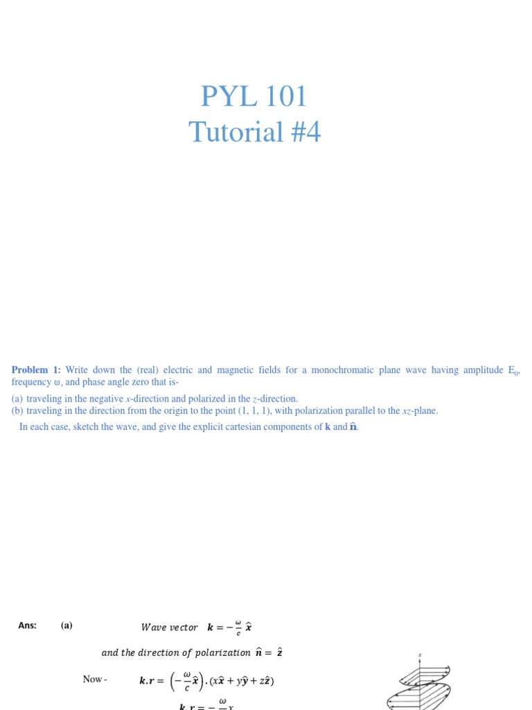 Problem 1: Write down the (real) electric and magnetic fields for a monochromatic plane wave having amplitude E0,