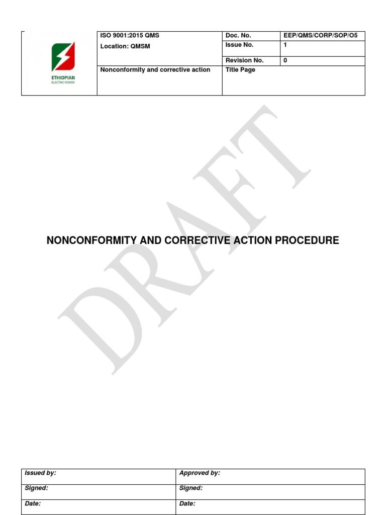 NONCONFORMITY AND CORRECTIVE ACTION PROCEDURE