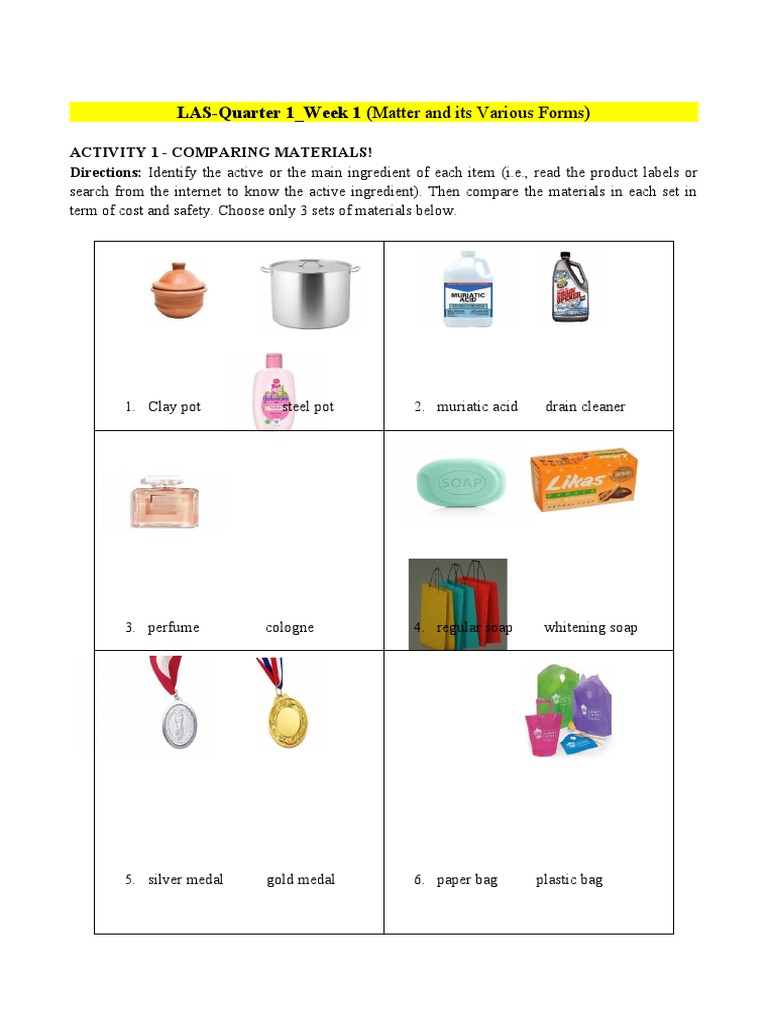LAS-Quarter 1_Week 1 (Matter and its Various Forms)