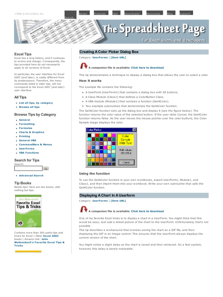 In particular, the user interface for Excel This tip demonstrates a technique to display a dialog box that allow s the user to select a color.