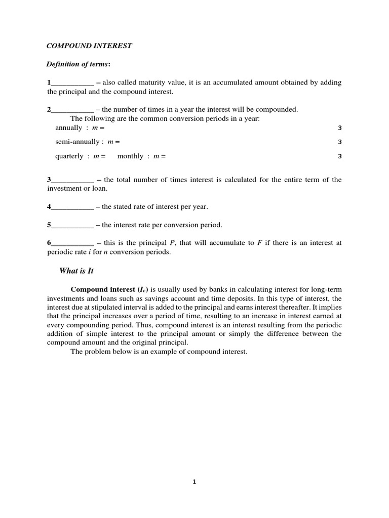 every compounding period. Thus, compound interest is an interest resulting from the periodic