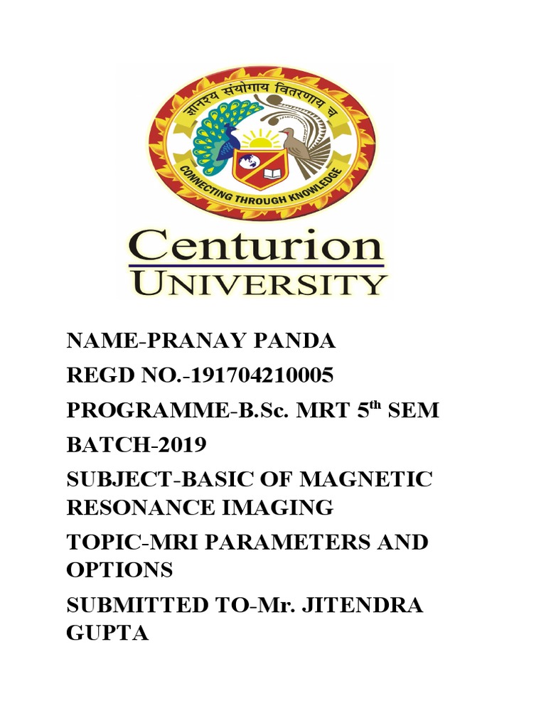 excitation with the help of radiofrequency (RF) pulses. A RF pulse is sent in at the