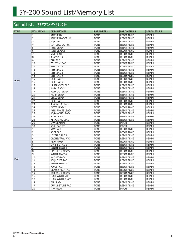 23 RING MOD LEAD TONE RESONANCE DEPTH