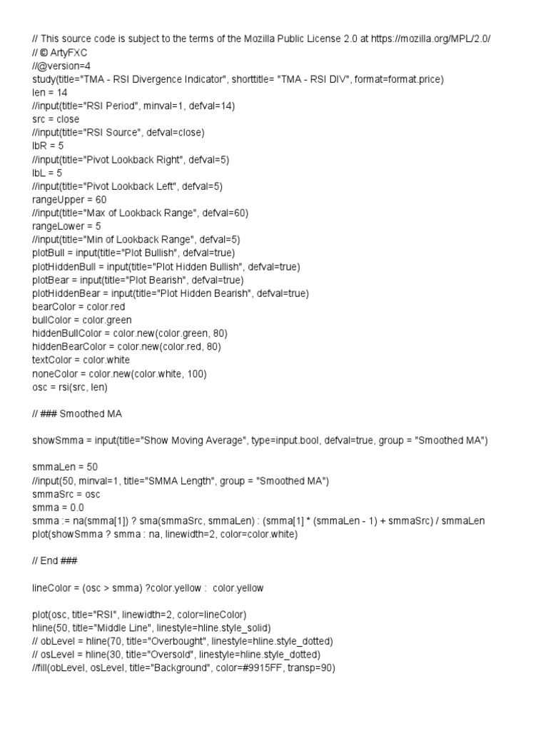 study(title="TMA - RSI Divergence Indicator", shorttitle= "TMA - RSI DIV", format=format.price)
