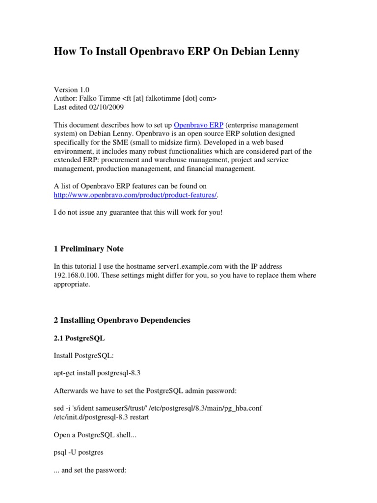 system) on Debian Lenny. Openbravo is an open source ERP solution designed
